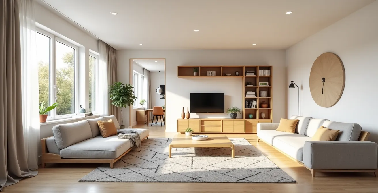 Face à ce casse-tête, les conseils habituels fusent : « peins tout en blanc », « adopte le minimalisme », « débarrasse-toi de tout ». Ces solutions, bien qu’utiles en surface, ignorent une vérité fondamentale. Le sentiment d’espace n’est pas seulement une question de vide, mais de perception. Et si la véritable clé n’était pas de pousser les murs, mais de maîtriser l’art de la circulation et de l’illusion ? C’est une approche de designer, où l’on ne se contente pas de meubler, mais où l’on chorégraphie les déplacements et où l’on sculpte le volume perçu avec la lumière et des astuces psychologiques.