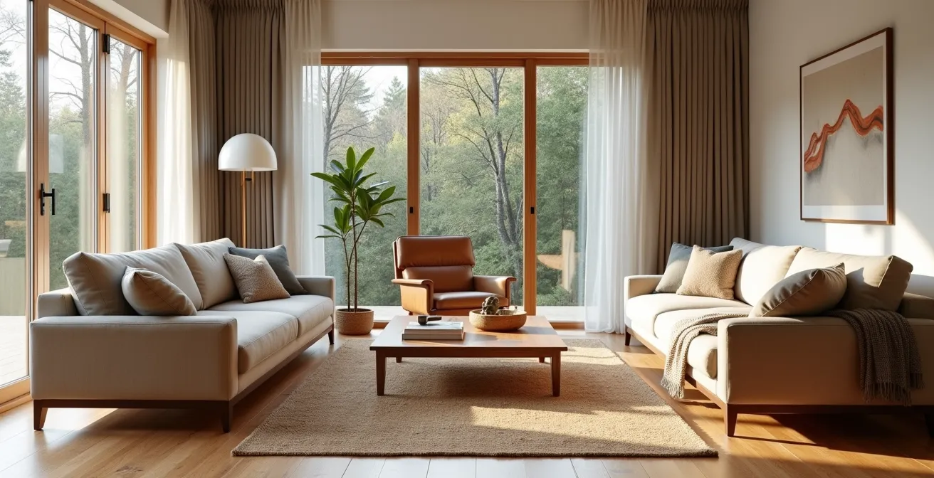 L’équilibre visuel est l’un des piliers d’un aménagement réussi. Une erreur courante est de placer des meubles de poids visuel très différent sans créer de lien entre eux, ce qui donne l’impression que la pièce « penche » d’un côté. Un grand canapé sectionnel, par exemple, peut facilement écraser deux petits fauteuils délicats s’ils ne sont pas intégrés dans un ensemble cohérent. La clé n’est pas d’assortir les tailles, mais de créer un équilibre dynamique.