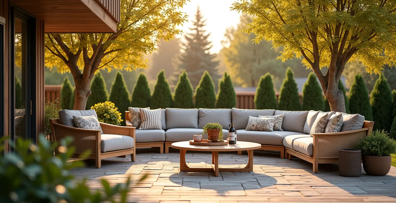 La solution n’est pas seulement dans la forme, mais dans la substance. Les conseils habituels se concentrent sur le nombre de places ou le style. On oublie l’essentiel : comment la configuration des meubles influence-t-elle le flux des conversations ? Comment les matériaux résistent-ils non seulement à une averse, mais au cycle complet de nos saisons, des UV intenses de juillet au gel d’un mois d’avril tardif ? La véritable clé n’est pas de choisir un meuble, mais d’appliquer une véritable ingénierie sociale et technique à son espace extérieur.